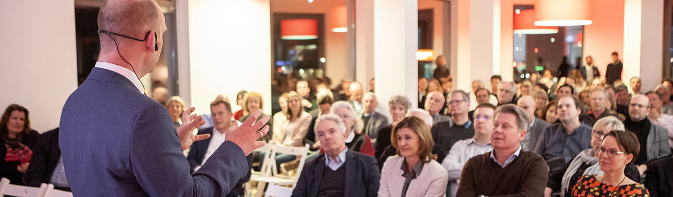 Rackham F. Schröder, Geschäftsführer von Engel & Völkers Commercial Berlin, begrüßte die Gäste und eröffnete den Vortrag. Mit Blick auf den angespannten Berliner Wohnungsmarkt und das Ringen um Lösungen plädierte er für einen konstruktiven Austausch. „Es sollte in Berlin nicht um Vermieter gegen Mieter gehen, sondern um ein Miteinander. Das gemeinsame Ziel ist eine zukunftsorientierte Entwicklung unserer Stadt“, so Schröder.