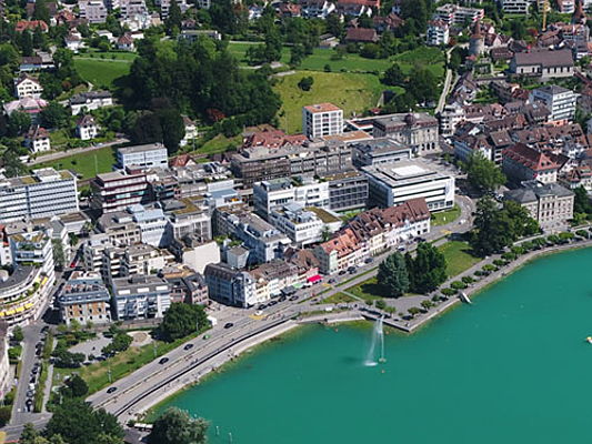 Die ehemalige Verzinkerei Zug entstand vor mehr als 100 Jahren. Damals befand sich das Fabrikgelände außerhalb der Stadt, die noch recht klein war. Heute ist das Areal urban gelegen. Das Projekt Tech Cluster Zug sieht die Erneuerung des Werkareals der V-ZUG vor.