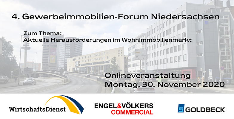 Am 30.11.2020 findet ab 15:30 das 4. Gewerbeimmobilien-Forum Niedersachsen, unter der Schirmherrschaft des Niedersächsischen Ministers für Umwelt, Energie, Bauen und Klimaschutz, Olaf Lies, als Online-Veranstaltung statt. Das Forum widmet sich unter anderem den Fragen: