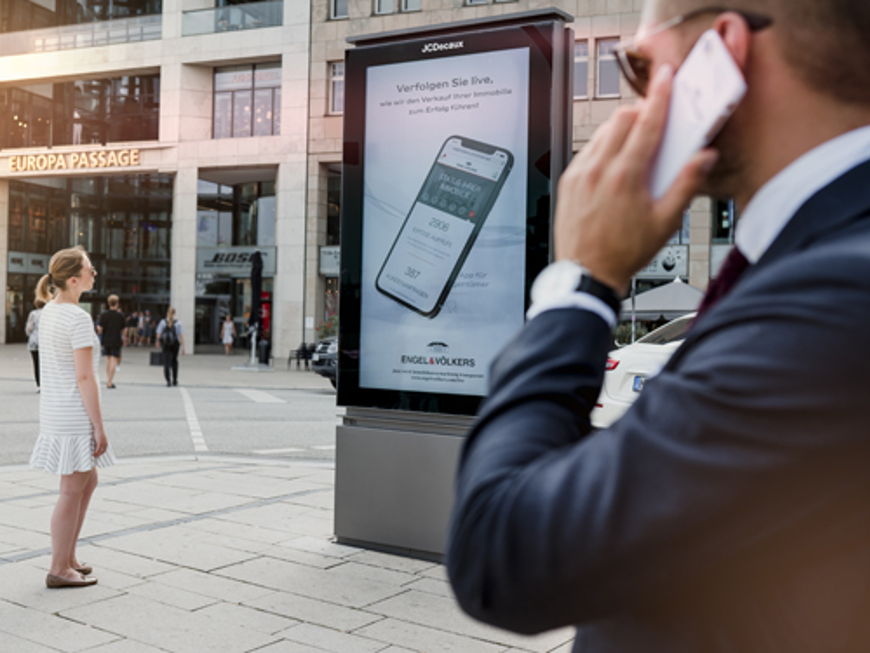 When choosing which Citylight posters to display, Engel & Völkers opted for high-reach and exclusive locations throughout Hamburg city centre. For example, the advertising can be seen along the well-attended shopping mile Mönckebergstraße, the popular Spitalerstraße or on Jungfernstieg on the Binnenalster. In a ten-second clip, pedestrians are introduced to the advantages of the app. The exclusive and extremely popular locations of the City Lights posters are estimated with a result of 6 million views within a week.