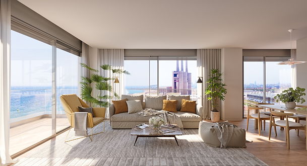 Su nueva vivienda en un ámbito dotado de todos los servicios urbanos en una ubicación privilegiada a pie de playa, en el frente marítimo de Badalona junto el puerto deportivo, donde se ha transformado la fachada industrial manteniendo el patrimonio. Paseos junto el mar, deporte y vida saludable a la puerta de su casa.