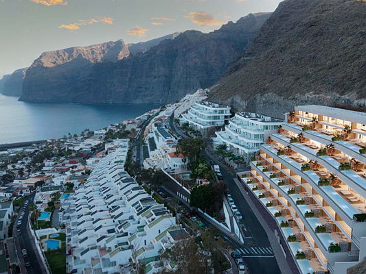 Los Gigantes está situado en la isla más grande de las Islas Canarias, en Tenerife, en medio del Océano Atlántico. En este lugar, en una bahía, se elevan rocas basálticas gigantes de más de 500 metros de altura sobre el nivel del mar. Desde aquí, se disfruta de una vista inolvidable que se extiende a través del estrecho hasta la mística isla vecina de La Gomera, donde el sol se pone majestuosamente cada tarde.